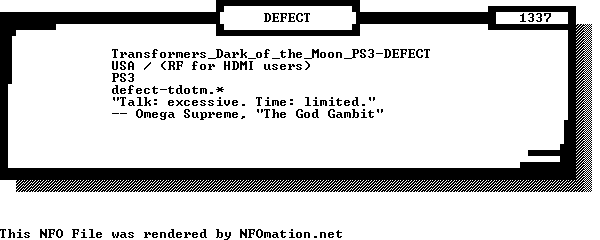 Transformers Dark of the Moon PS3 DEFECT